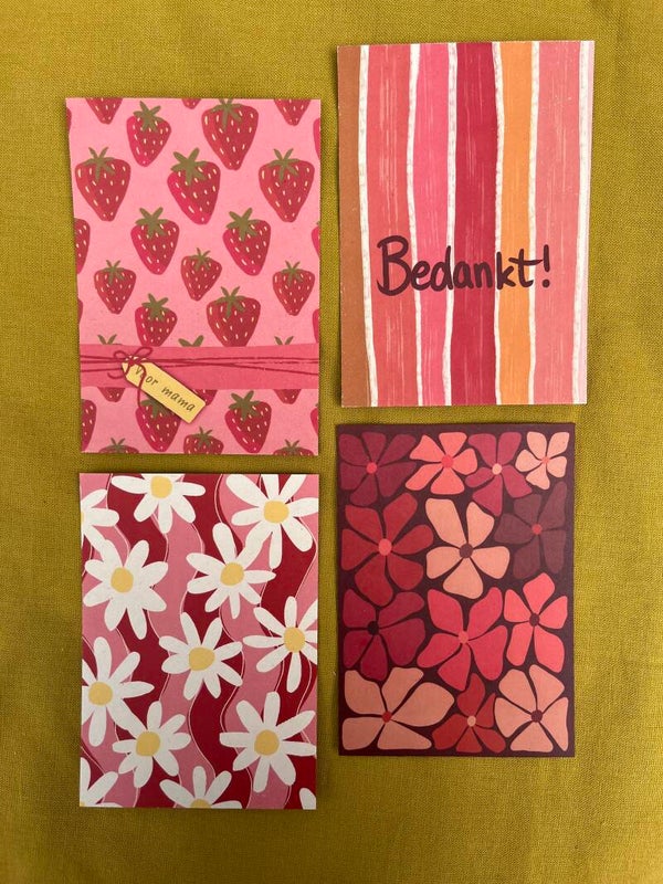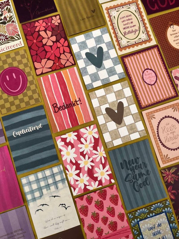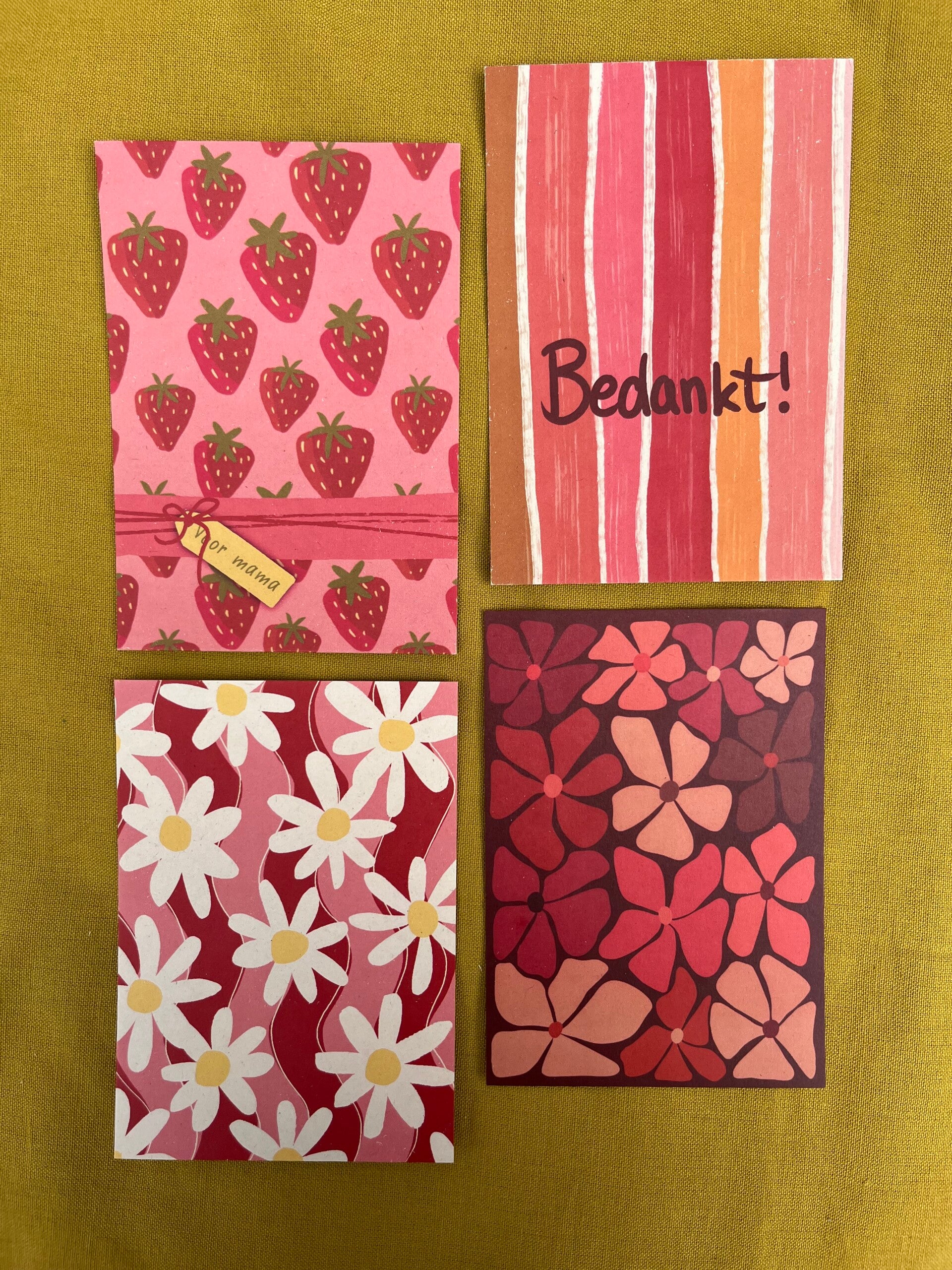 De kaarten zijn gedrukt op stevig gerecycled papier, waarbij de gerecyclede suikerrietvezel het papier een mooie, natuurlijke en zachte uitstraling geeft.
