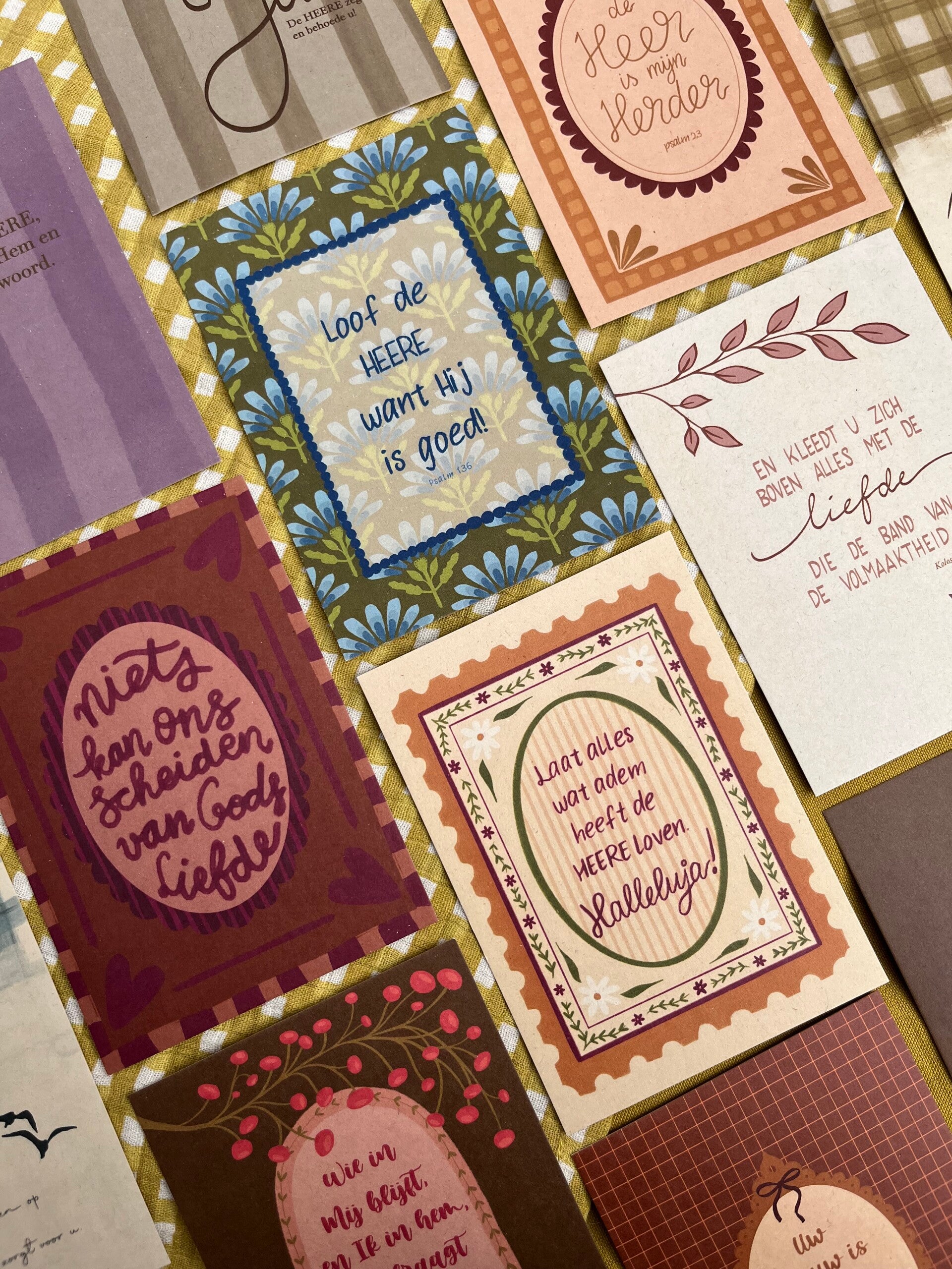 De kaarten zijn gedrukt op stevig gerecycled papier, waarbij de gerecyclede suikerrietvezel het papier een mooie, natuurlijke en zachte uitstraling geeft.